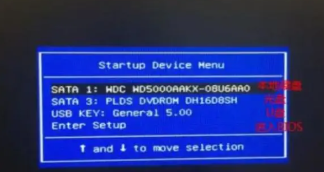 3、在啟動項選擇菜單界面下,選擇usb項,按回車鍵即可進入U盤重裝界面。