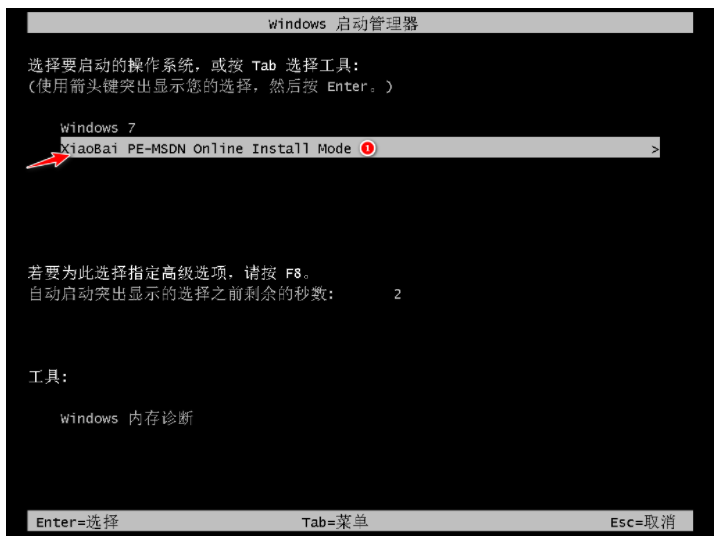 6、進入啟動管理器界面,選擇第二項,按回車。