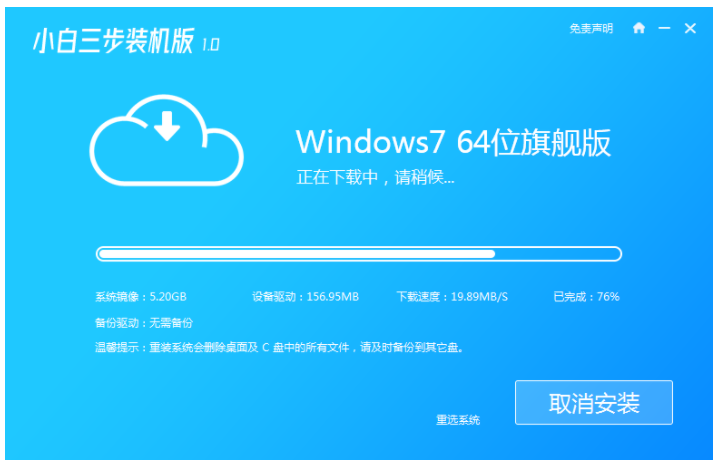 方法一:使用小白三步裝機版工具在線重裝win7系統