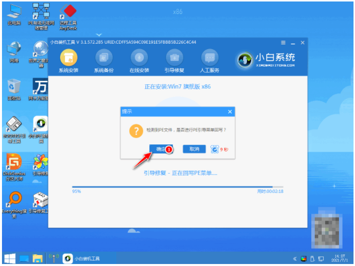 8、提示是否進行PE引導菜單回寫時,點擊確定按鈕。