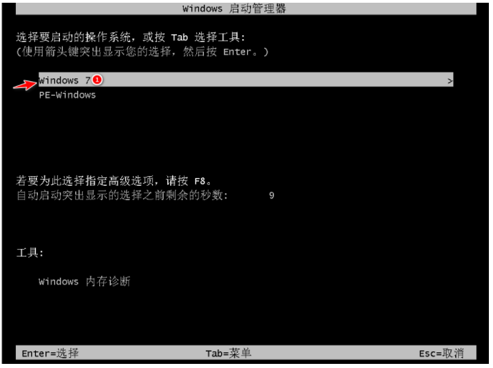 10、再次進入啟動管理器界面,選擇windows7回車即可。