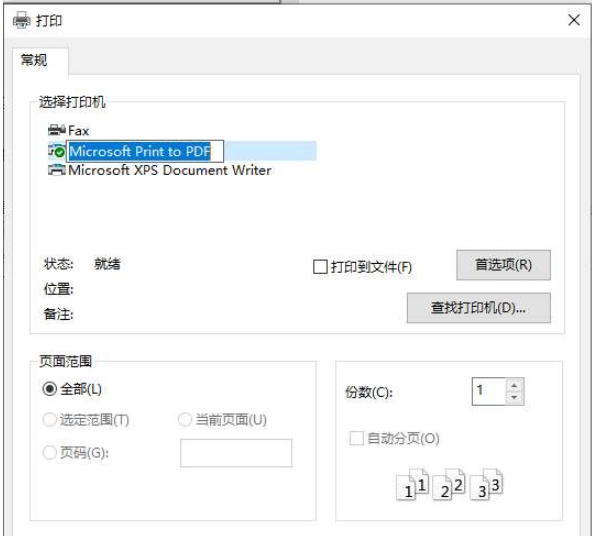 7、這樣在打印文件的時候,選擇print to pdf打印機就可以將文件保存成pdf文件類型了。