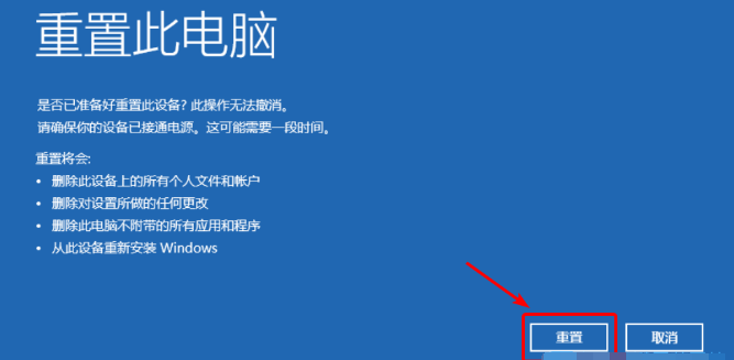 注意事項:如果提示無法重置,或者重置后問題依舊,說明遇到了靠電腦自己無法修復的故障,可以嘗試方法二的借助u盤重裝系統解決。