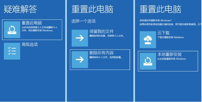 點擊重置此電腦 - 刪除所有內容 - 本地重新安裝。
