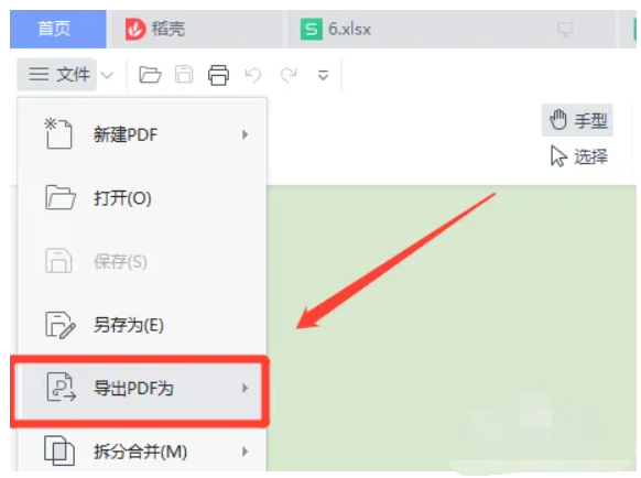 1.打開pdf文件下拉列表,點開“導出PDF為”選項欄。