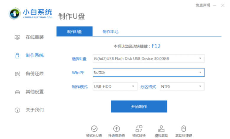 方法一:借助小白一鍵重裝工具制作u盤重裝系統