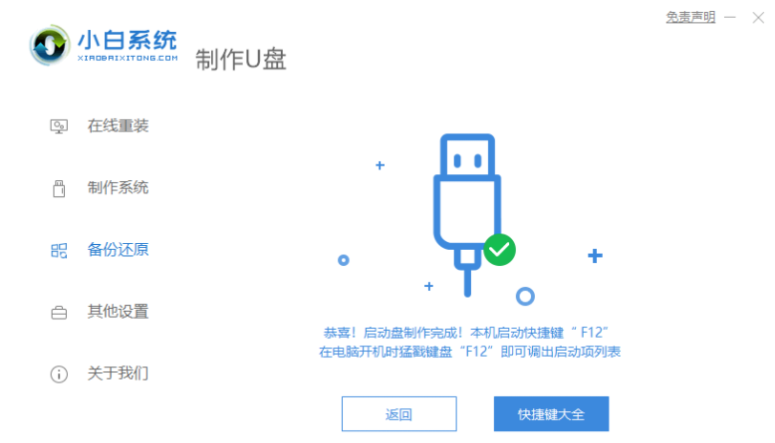 3、等待軟件制作u盤啟動盤成功后,可以先預覽需要安裝的電腦主板的啟動熱鍵,再拔除u盤退出。