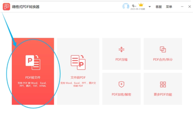 1、這里就以常用的嗨格式pdf轉換器工具為例,首先在電腦上打開該軟件,點擊主界面上的“PDF轉文件”。