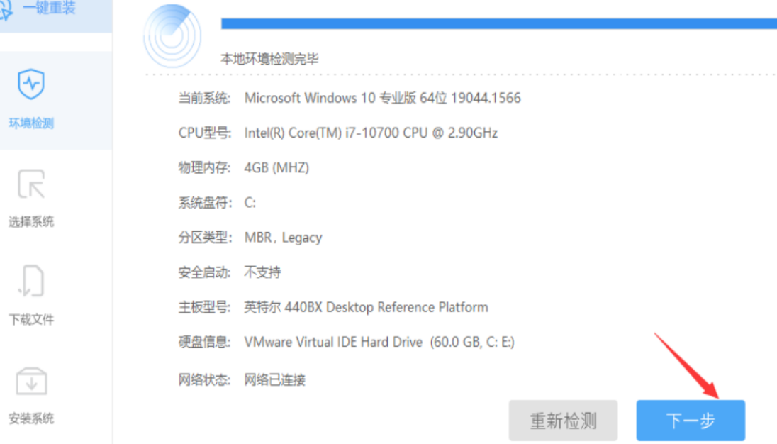 1、首先下載【系統之家裝機大師】然后進入工具后,檢測完畢后點擊下一步。