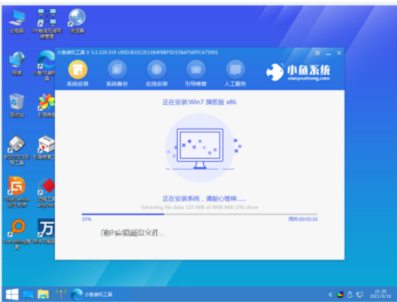6、進入PE系統界面之后,等待小魚軟件自動給電腦安裝win7。