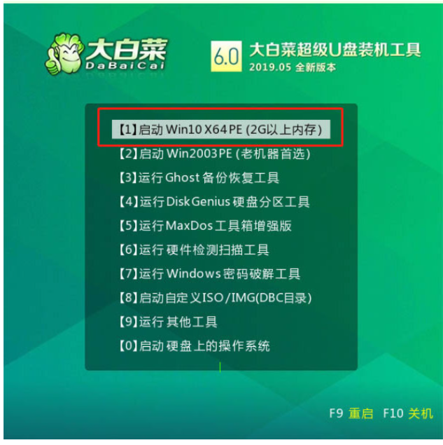 3、插入U盤啟動盤,選擇重啟電腦,在開機畫面出現時快速按下U盤啟動快捷鍵進入啟動項設置界面,并將U盤設置為第一啟動項,最后按回車進入大白菜主菜單。