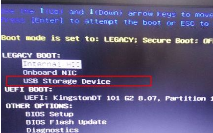 6、重啟電腦過程中按F12,進入開機啟動項選擇頁面,選擇USB storage device回車,即可成功進入U盤啟動盤。