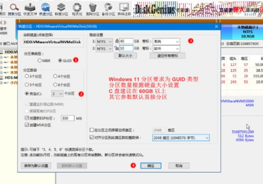 3.調整所需的主要參數后,分區工具會自動逐步系統分區,一般很快就能進行。