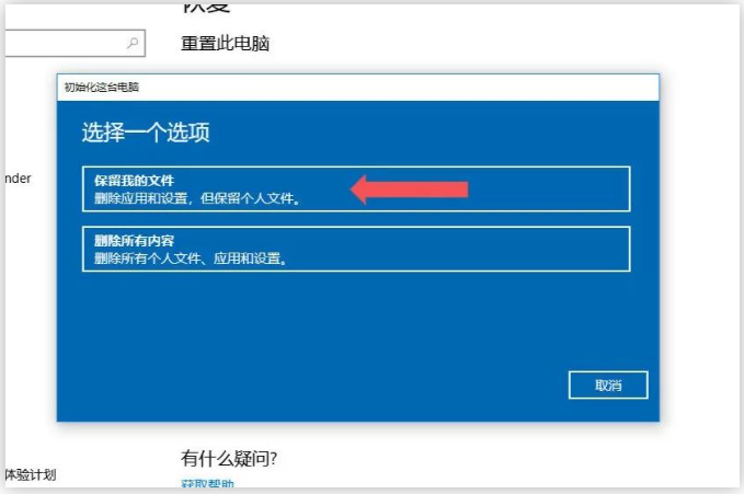 保留我的文件:是保留個人文件的重置,會保留系統盤下的個人信息,比如用戶名、桌面內容、下載過的文件等。