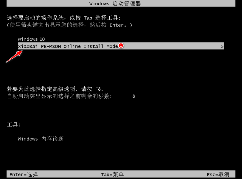 來到開機選項界面,如圖示,選擇第二項進入xiaobai-pe系統。