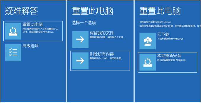 點擊重置此電腦 - 刪除所有內容 - 本地重新安裝。