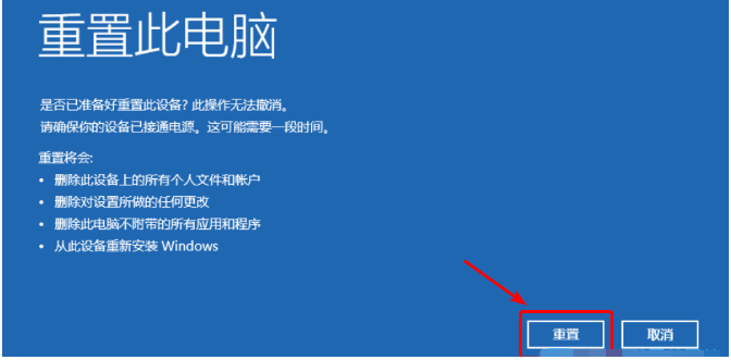 注意事項:如果提示無法重置,或者重置后問題依舊,說明遇到了靠電腦自己無法修復的故障,可以嘗試方法二的借助u盤重裝系統解決。