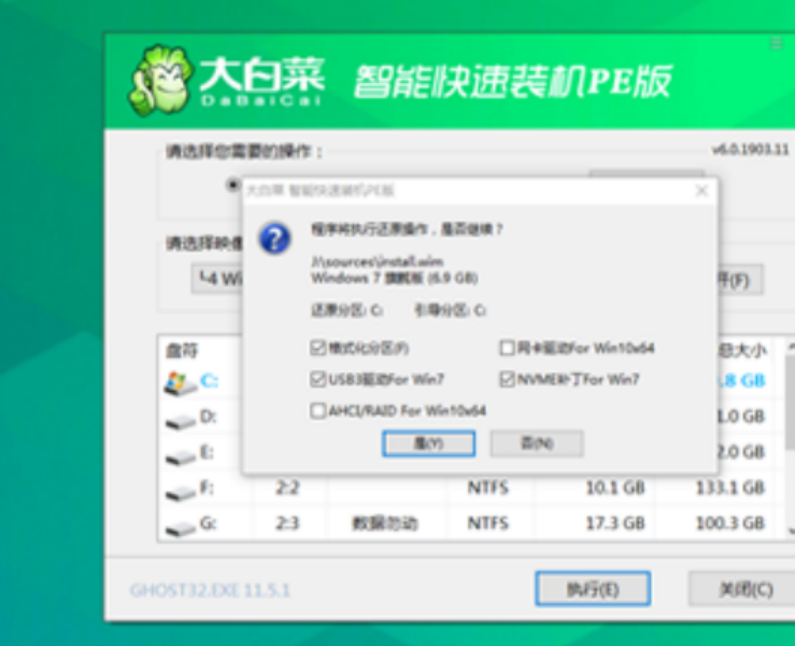 1、電腦插入U盤后,打開大白菜U盤制作工具,點擊“是”在線下載組件,更新成功后點擊“一鍵制作成USB啟動盤”即可。
