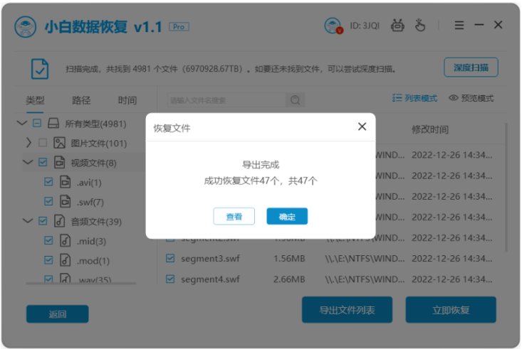 3、等待數據掃描完成后,選擇需要恢復的文件類型,點擊立即恢復。
