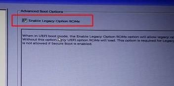 4、然后點開 Advanced Boot Options ,勾選 Enable Legacy Option ROMs ,點擊 aply ,再點exit退出,此時會重啟。