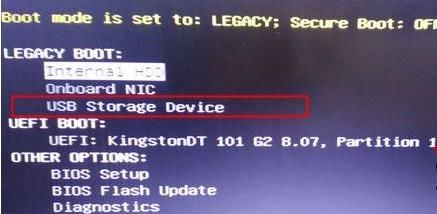 6、重啟過程中按 F12 ,就能進入開機啟動項選擇頁面,選擇 U SB storage device 回車,即可進入U盤啟動盤。