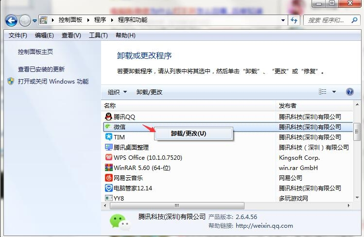 3、找到微信,單擊鼠標右鍵卸載即可。