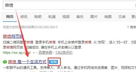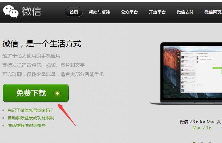 3、在電腦瀏覽器搜索“微信”,找到微信官網,點擊免費下載按鈕。