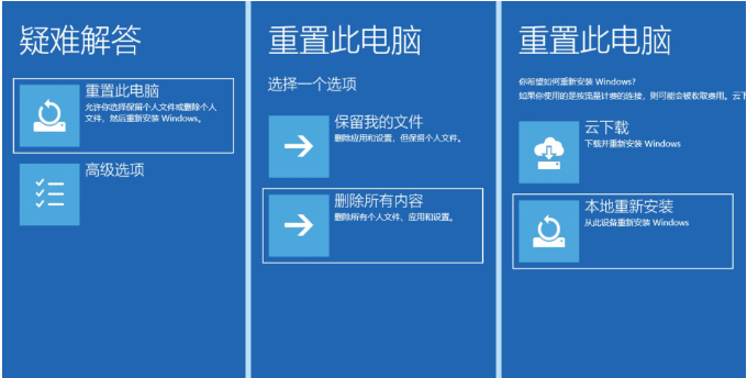 點擊重置此電腦 - 刪除所有內容 - 本地重新安裝。