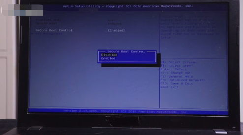 2、點擊“secure boot menu”,“secure boot control”,將其設置成“disabled”即可。