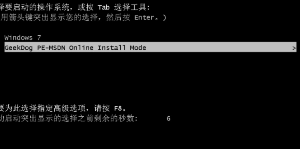 5、極客狗正在下載系統文件,下載完成之后電腦會自動重啟,重啟選擇PE所在項按回車。