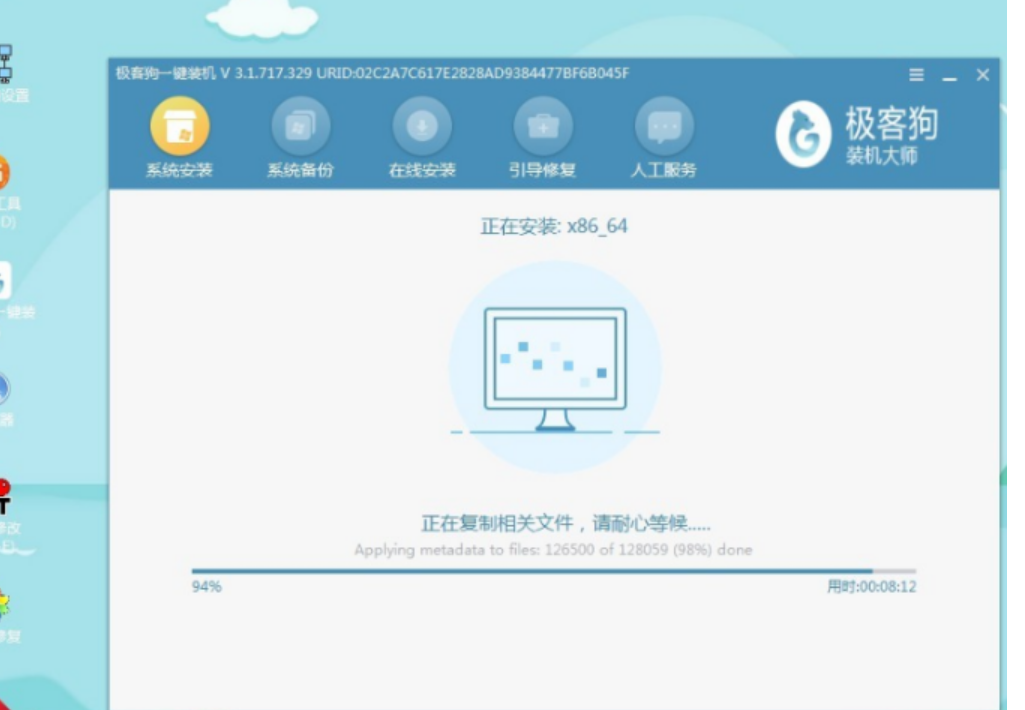6、電腦進入了極客狗PE系統之后將會自行安裝。