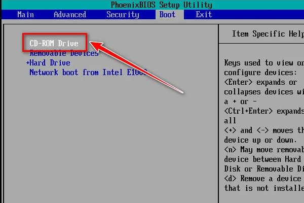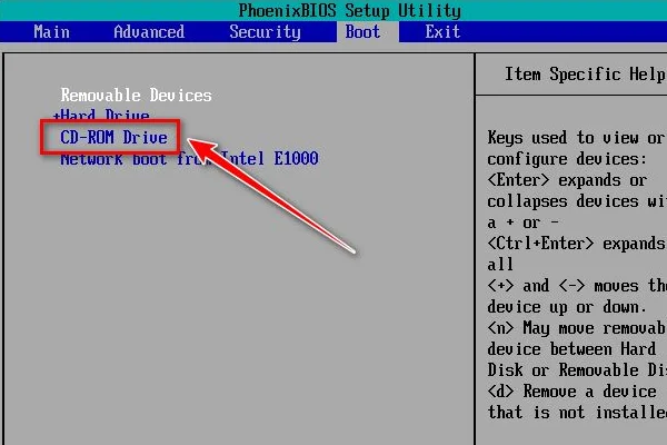 2、選擇紅色方框中的CD-ROM Drive功能,按F10鍵選擇紅色方框中的YES。