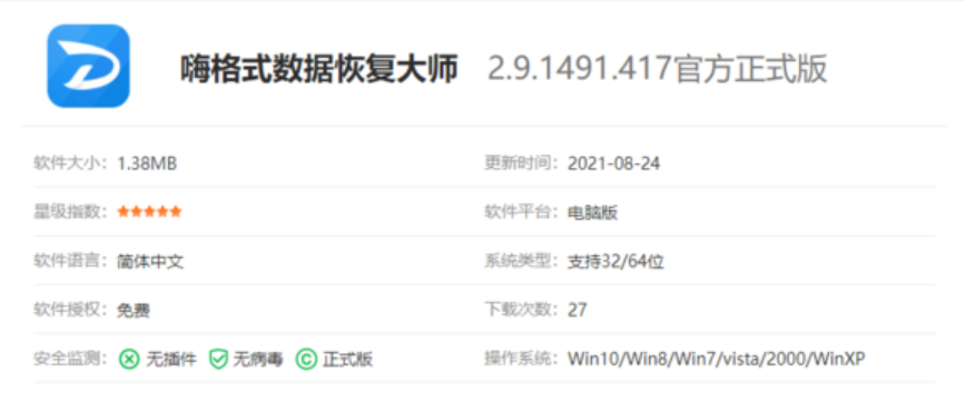 嗨格式數據恢復大師這款軟件,優點滿滿,擁有AI智能搜尋數據技術,且數據恢復成功率很高;而且該軟件可以支持誤刪、清空回收站、格式化、重裝系統等多種場景,如果不慎將回收站清空,卻發現里面仍有用的內容,那不妨嘗試下嗨格式數據恢復大師。