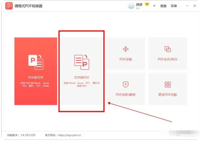 1、打開電腦中的PDF轉換器,以嗨格式PDF轉換器為例,點擊選擇主頁面上的“文件轉PDF”功能。