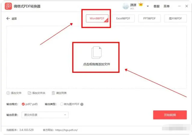 2、在“文件轉PDF”中,點擊選擇上面的“Word轉PDF”選項,隨即點擊軟件中間空白處將準備好的Word文件導入到文件列表區域,可以一次導入一份或多份。