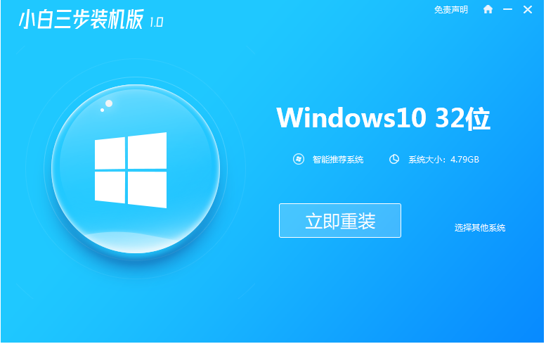 在聯想小新I2000-ISE電腦上下載后直接打開小白三步裝機版工具,選擇需要的系統,點擊立即重裝。(官方下載入口:小白系統官網)