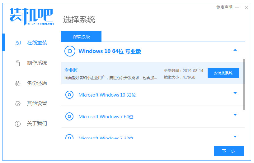 裝機吧在線系統重裝工具也是非常不錯的,內置高速下載模塊,提升下載速度;智能檢測系統,智能匹配最佳的系統,操作也比較簡單,擁有原版win7/8/10系統供我們下載使用,總體來說也是非常不錯的選擇。