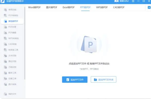 1、ppt轉pdf怎么操作呢?首先打開軟件,點擊左側“其他轉PDF”,在其中找到“PPT轉PDF”。