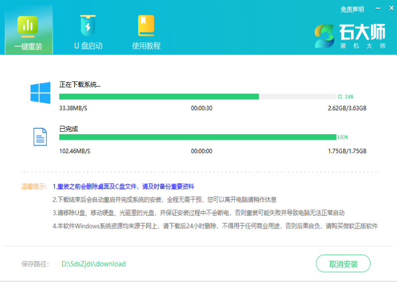 4、安裝完成后進入部署界面,靜靜等待系統進入桌面就重裝成功了。