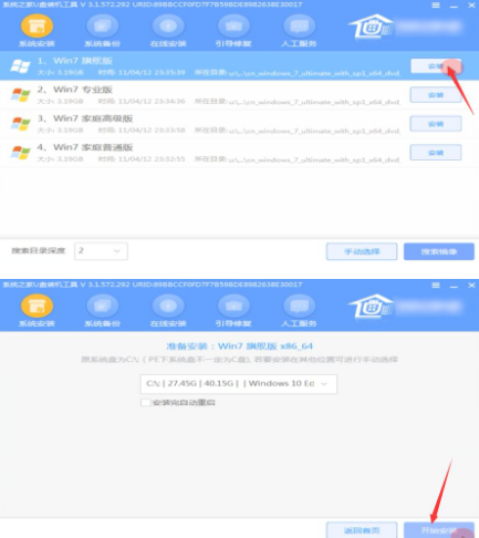4. 進入系統頁面后,軟件會自動搜索系統鏡像,找到鏡像后,點擊安裝,點擊開始安裝。