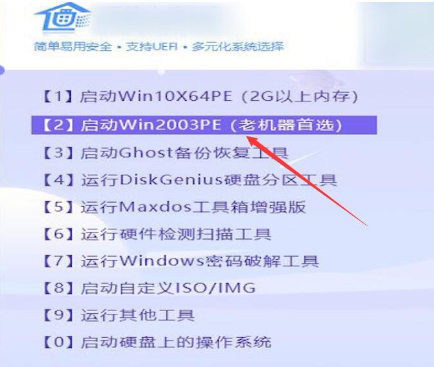 3. 進入引導選項界面后點擊PE選項進入系統。