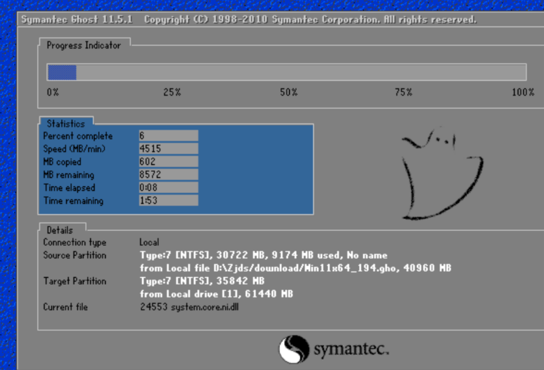 7、 再次重啟后,自動進入系統安裝界面最后就完成安裝