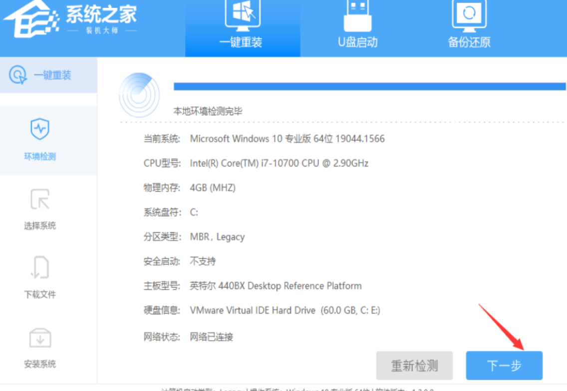 1、下載【系統之家裝機大師】進入工具后,檢測完畢后點擊下一步。
