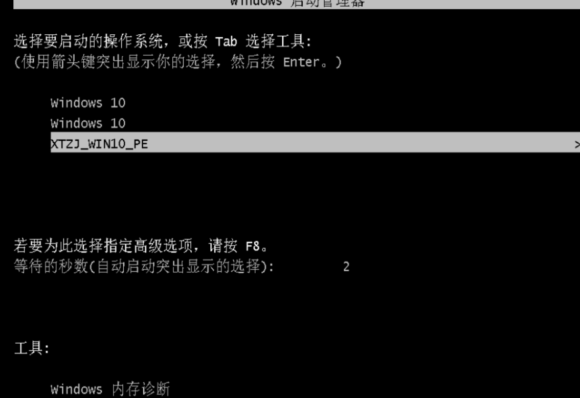 5、重啟系統后,進入啟動項選擇【XTZJ_WIN10_PE】。