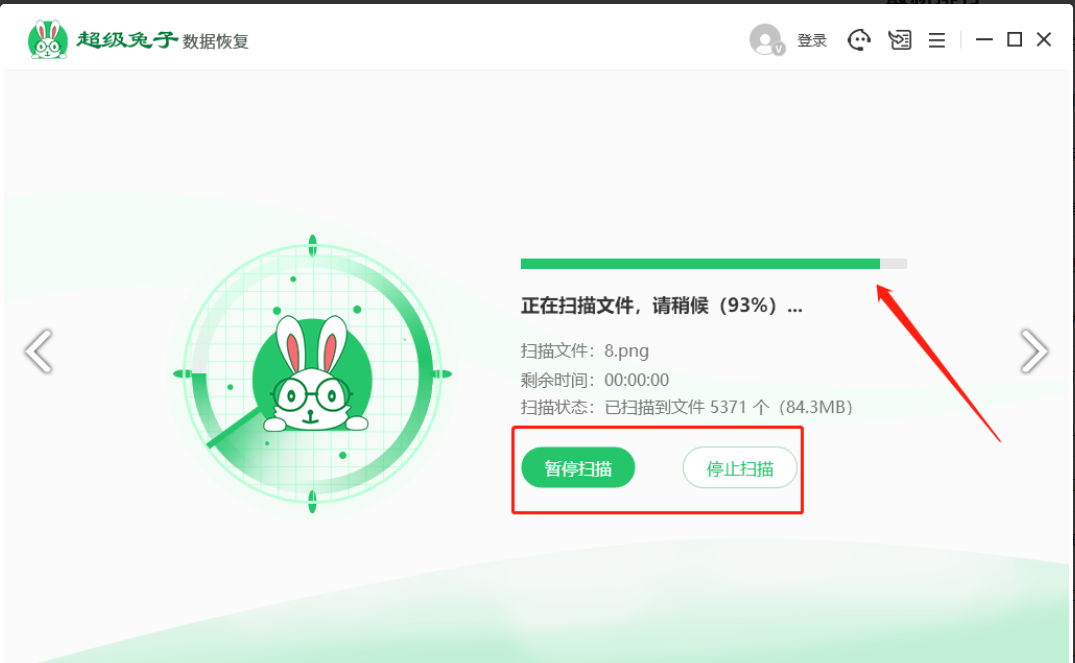 4、進入到掃描的頁面中,可以看到該頁面有一個掃描的進度條,以及【暫停掃描】和【停止掃描】的按鈕,如果想要停止掃描的話點擊一下該按鈕即可。