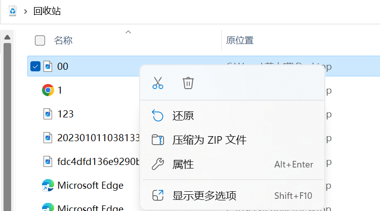 快捷鍵恢復不了,不妨嘗試下在回收站里面操作來使電腦數據恢復。打開回收站,找到數據,右鍵點擊【還原】。如果你之前文件的刪除是使用了永久刪除、設置刪除文件不進入回收站,或者回收站已經被清空了,這個方法就不能幫到你了,請繼續往下閱讀。