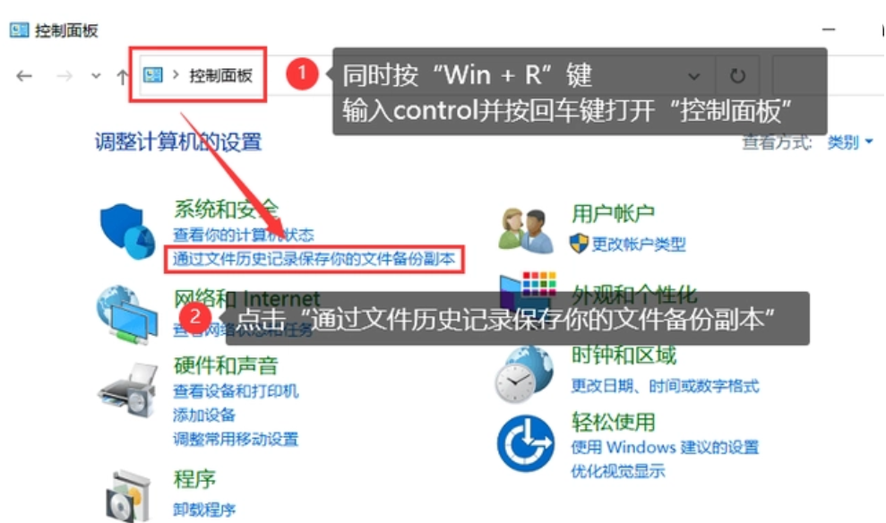 2、在【系統和安全】找到并點擊【通過文件歷史記錄保存你的文件備份副本】。