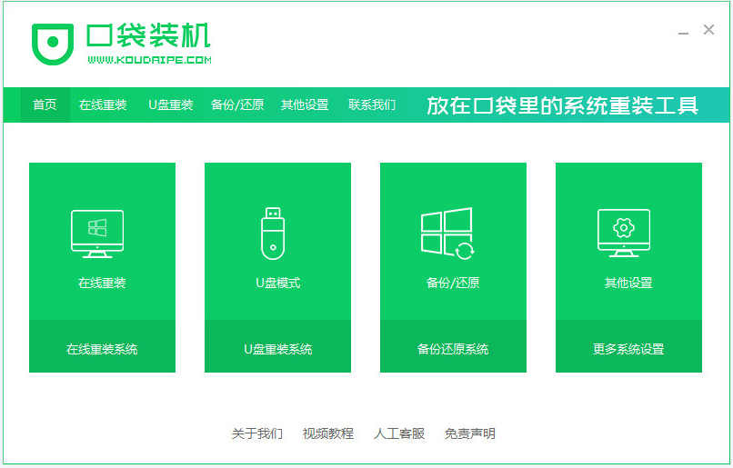 方法一:通過借助口袋在線一鍵重裝xp系統