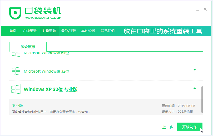 方法二:通過借助口袋制作u盤重裝xp系統(也適合不能進系統的情況)