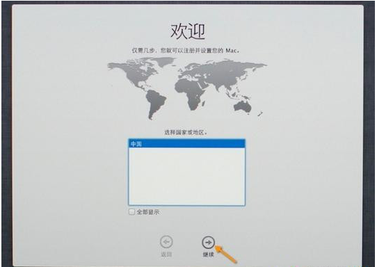 12、當系統安裝完成后會自動重啟,點擊繼續進行mac系統配置即可正常使用新系統。
